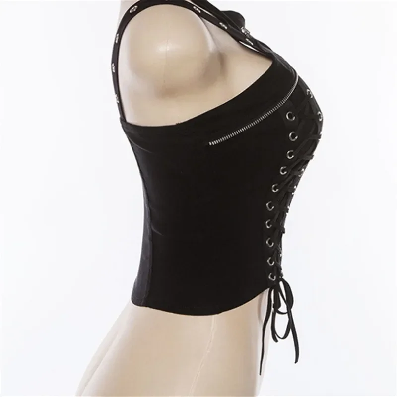 Y2k Dark Punk Gothic Corset Vest Women 2024 High Waist Bandage Crop Tank Tops Streetwear Emo Alt Harajuku Halter Rave Outfits