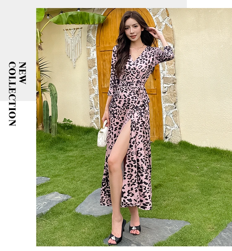 ZAROY Leopard Print Luxury Women Wrap Dresses Elegant V Neck Party Evening Long Dress Casual Belted Holiday Beach Robe Vestidos