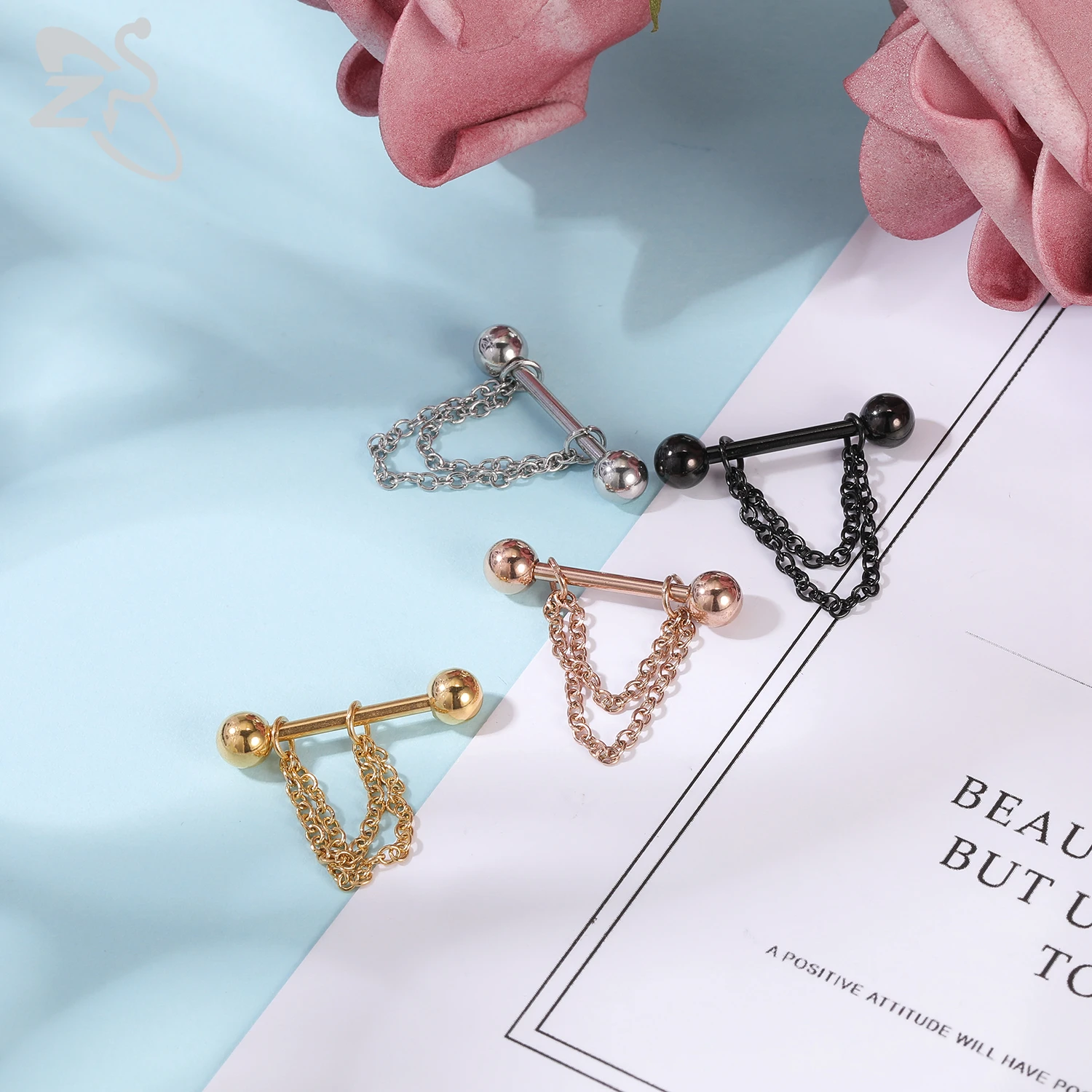 ZS 2 Pcs/lot Heart Crystal Nipple Piercings Men Women Tassel Drop Stainless Steel Nipple Ring Barbell Body Piercing Jewelry 14G
